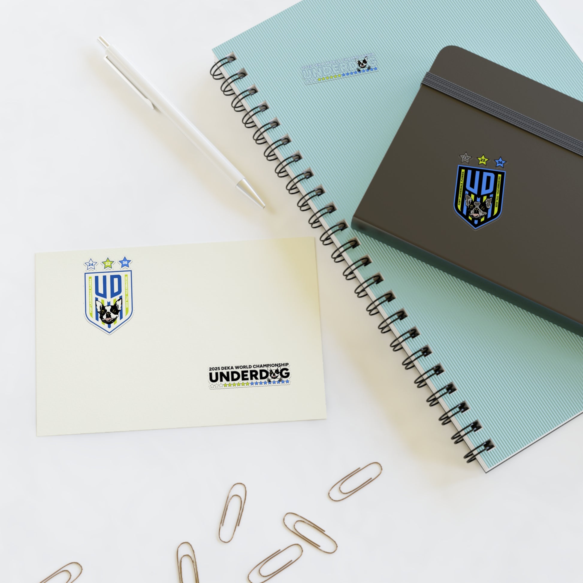 - Colored stars on front & back correlate with each discipline FIT (white), MILE (green), STRONG (blue) using primary Underdog colors